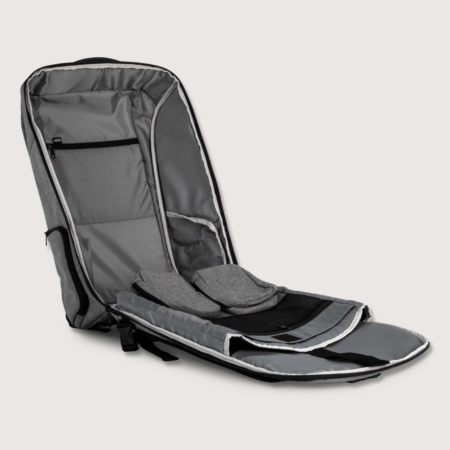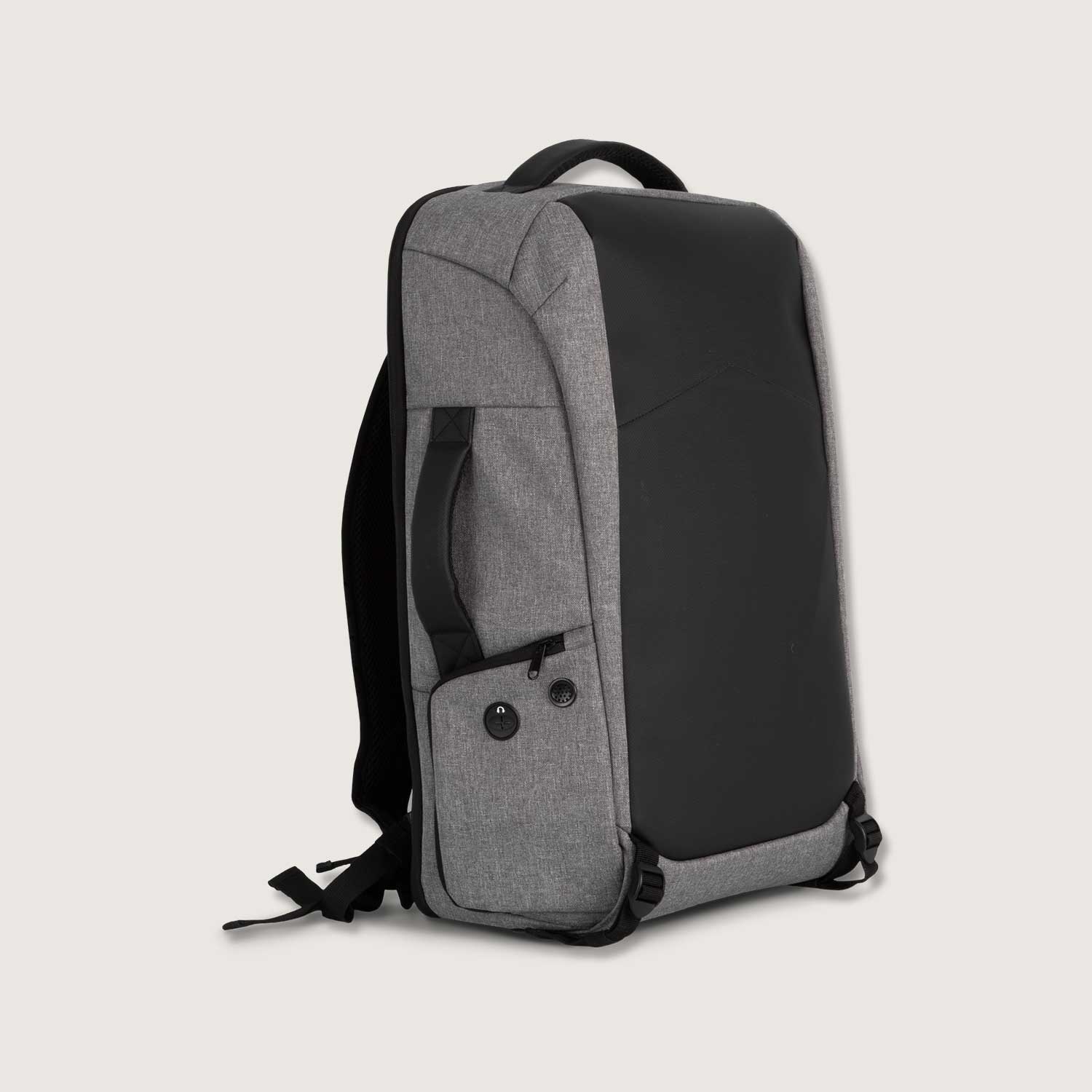 Recycelter Rucksack mit Anti-Diebstahlschutz-Tasche auf der Rückseite